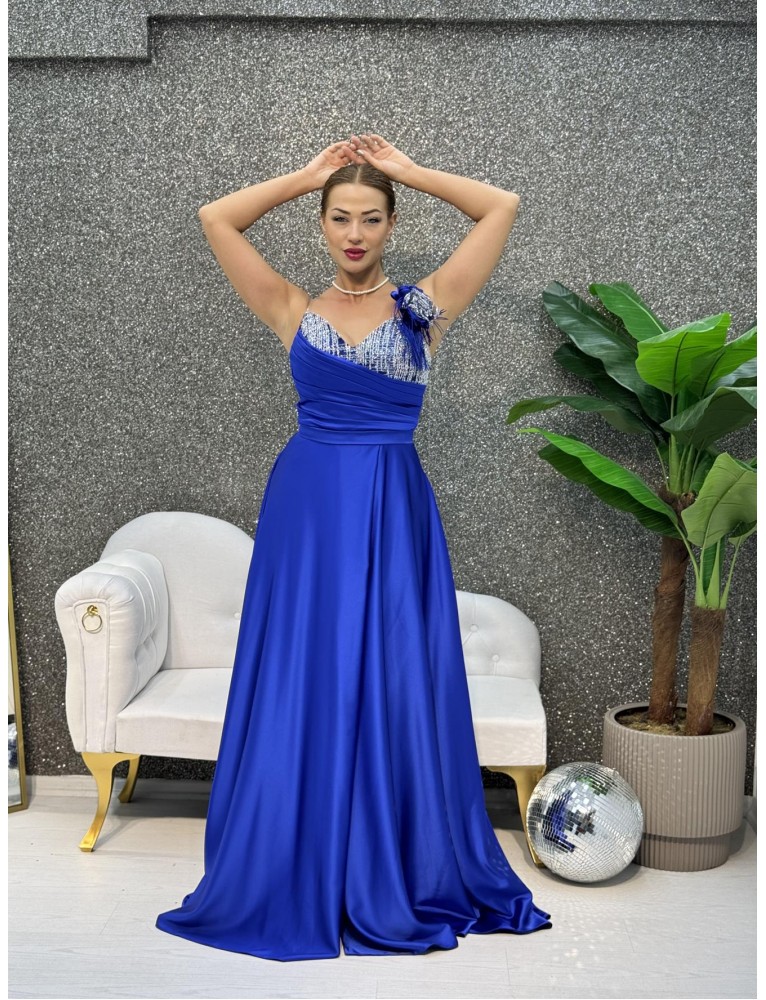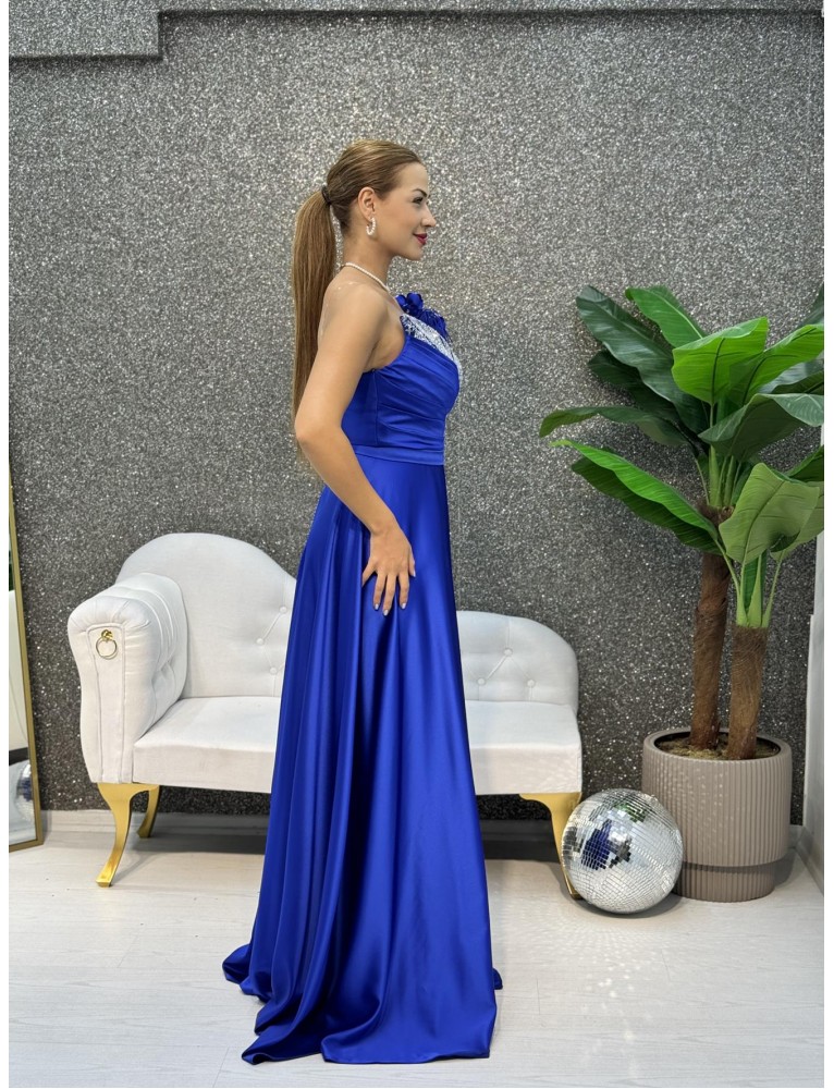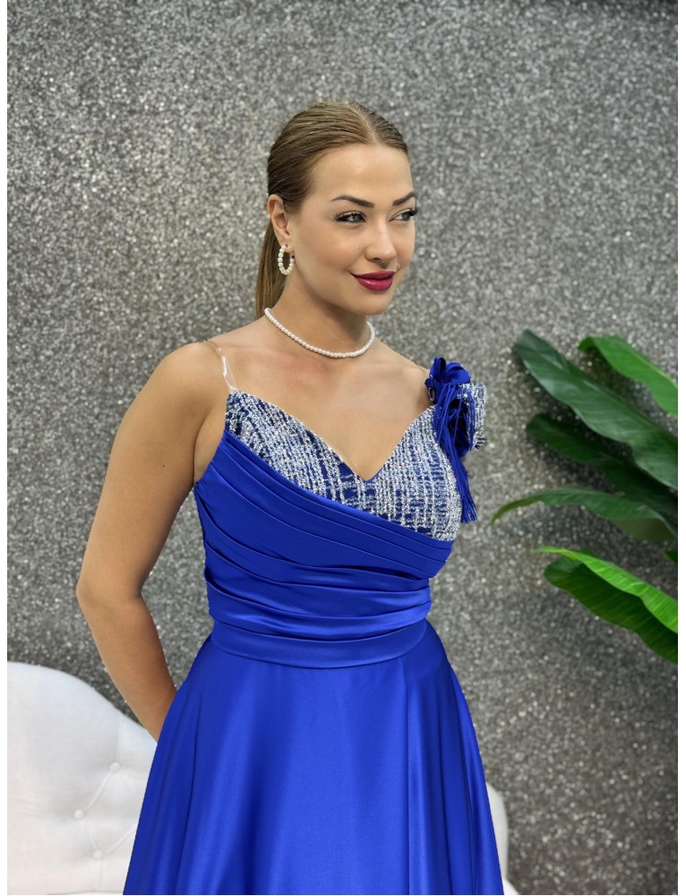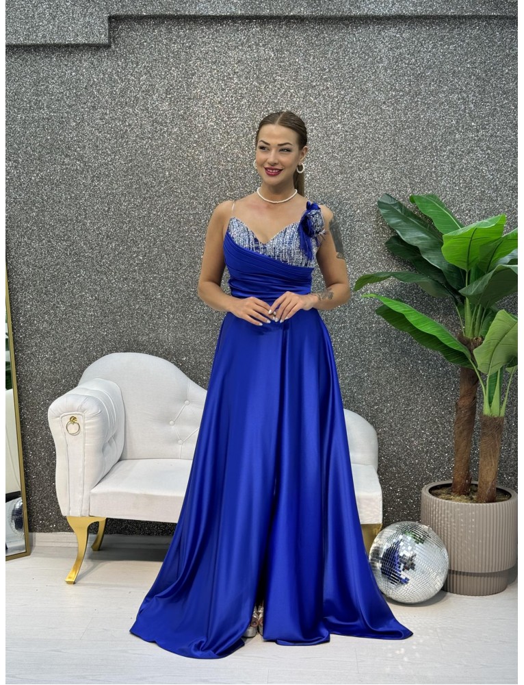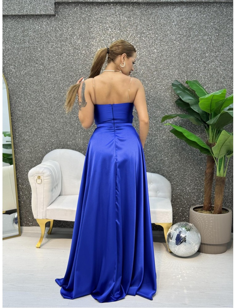 KALP YAKA DERİN YIRTMAÇLI SATEN ABİYE