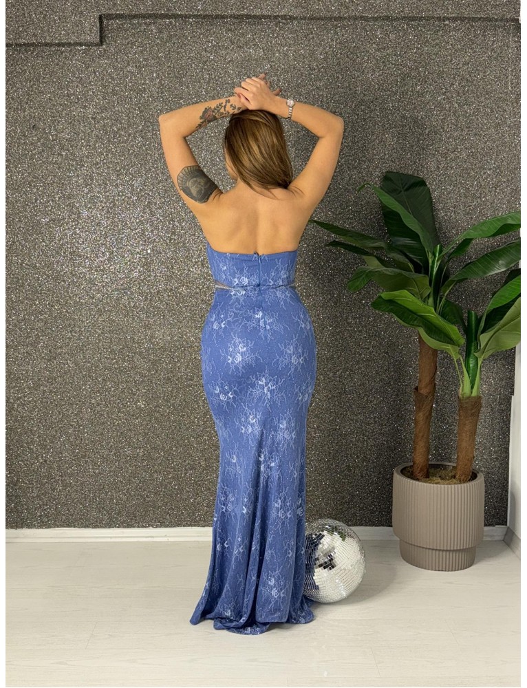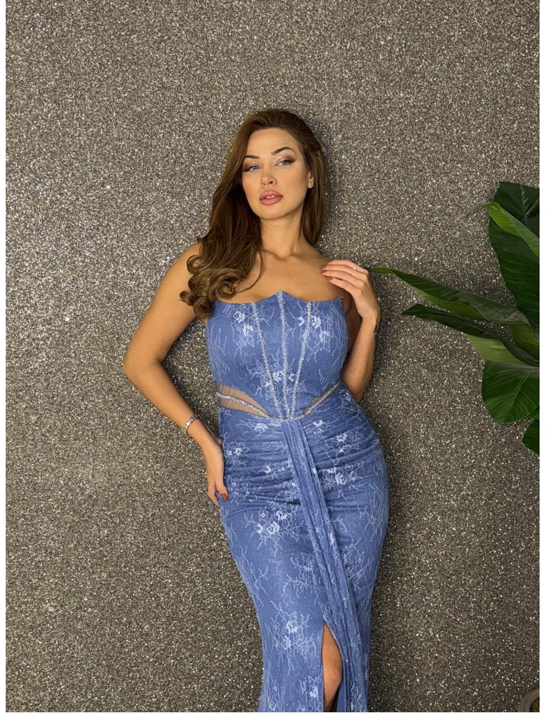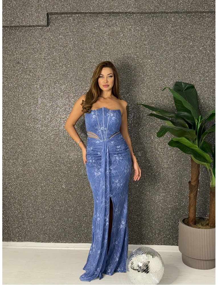 STRAPLEZ BONCUK ISLEMELI BALIK ELBISE